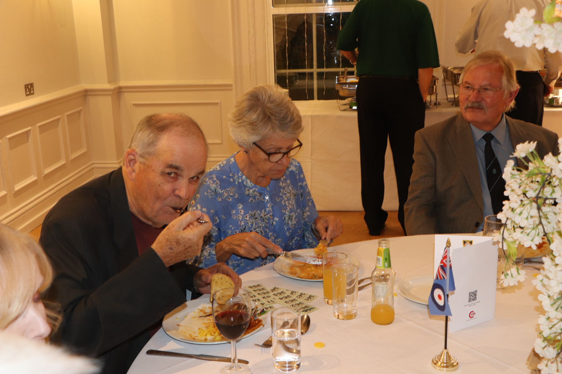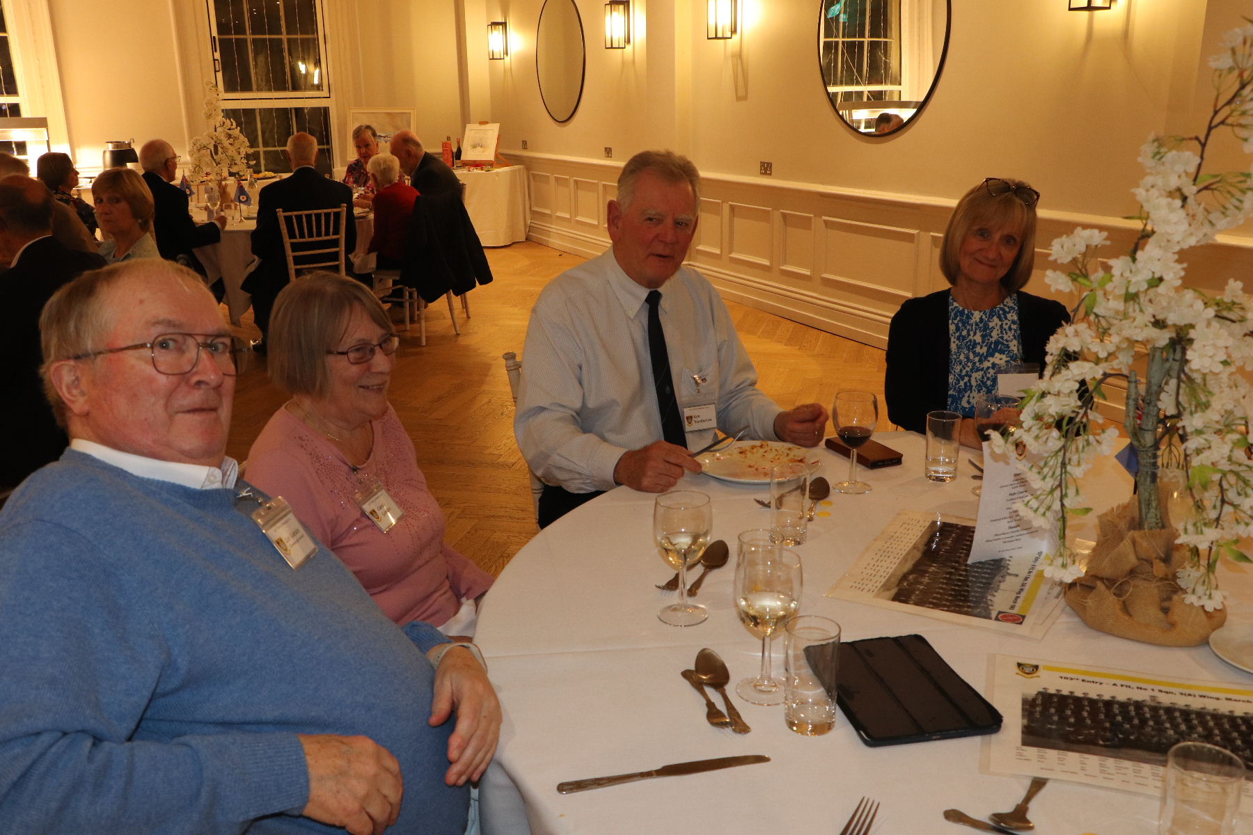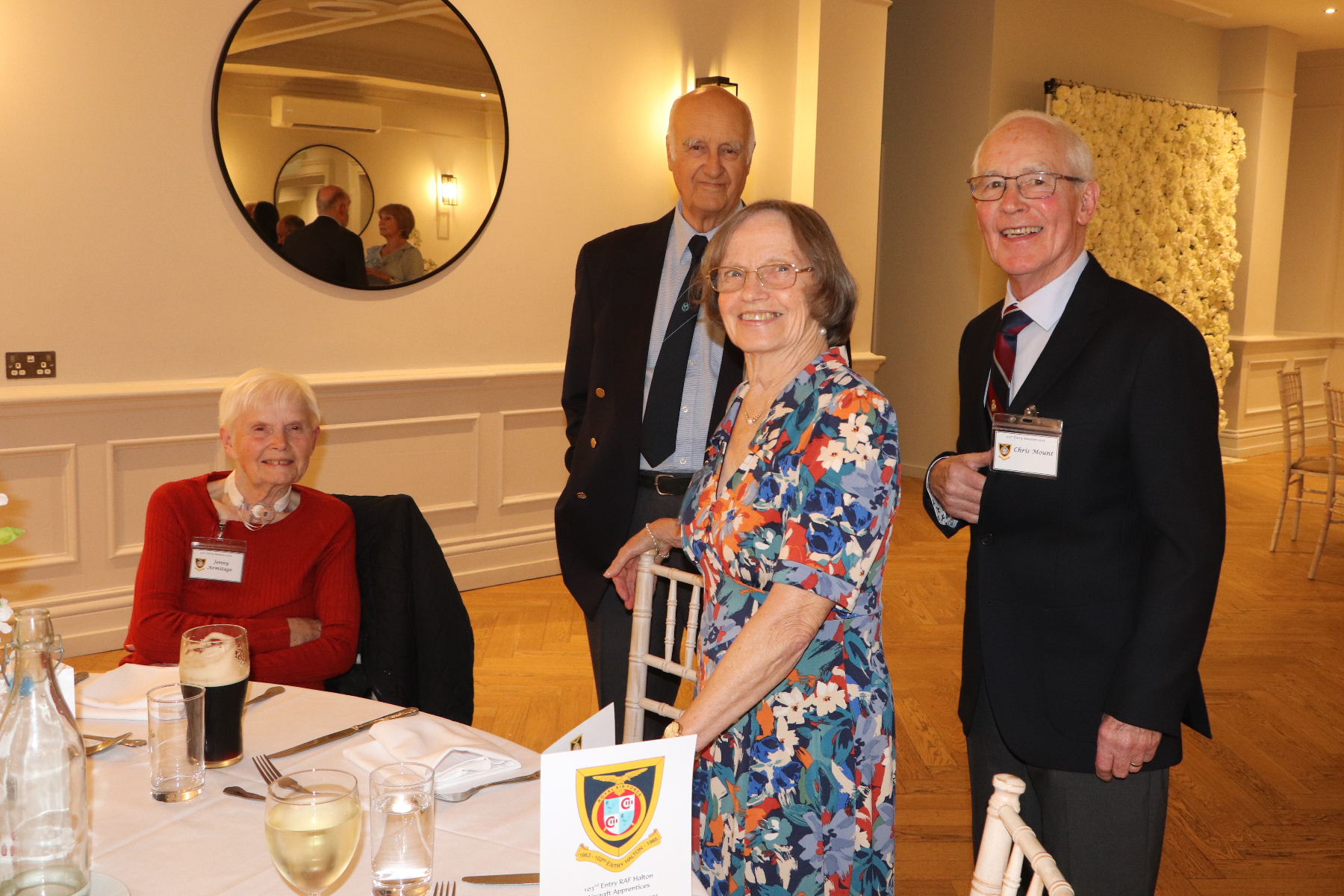 Ken Bannister and Sandie Haines, Les Garden and Carole, Brian Lee and Yvonne, Barry Neal and Ruth, Dave Post and Sue, Les Shardlow and Noreen, Chris Wales and Heather, Mick Woodhouse and Tracy Owens, Malcolm Watts and Ingrid Shales, Ian Armitage and Jenny, Jeremy Bell and Manda, Paul Collins and Alicia, Jeff Lloyd and Jeanette, Chris Mount and Molly, Ken Warburton and Angela, Chris Lacey, Bill Rawden, Roger Evanson, Roger Flitter, Gary McMenemy, Geoff Owen, Andrea Paterson (Duncan’s Wife), ‘Mac’ MaCaffrey (Ex 60th Entry) and Val MacCaffrey,